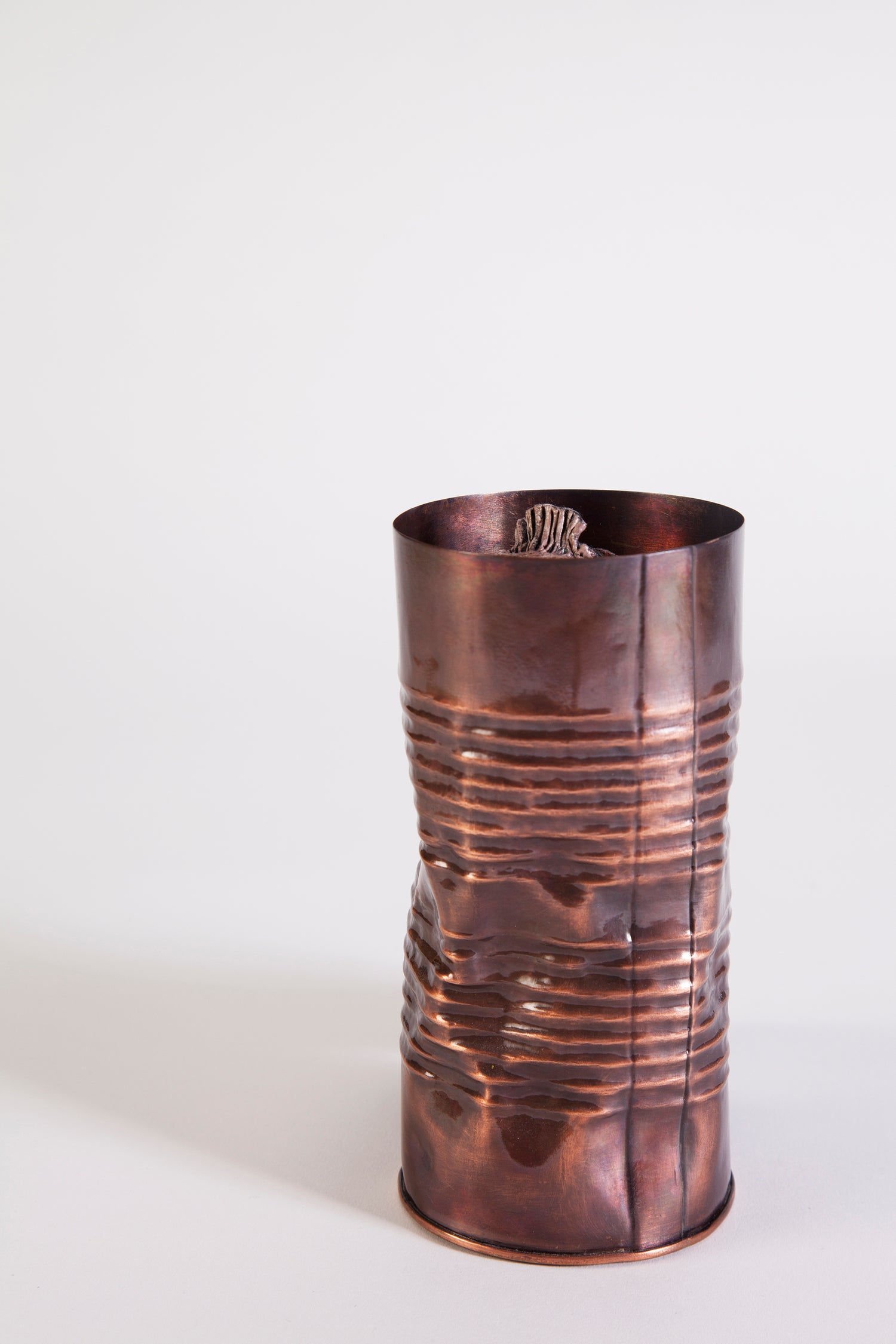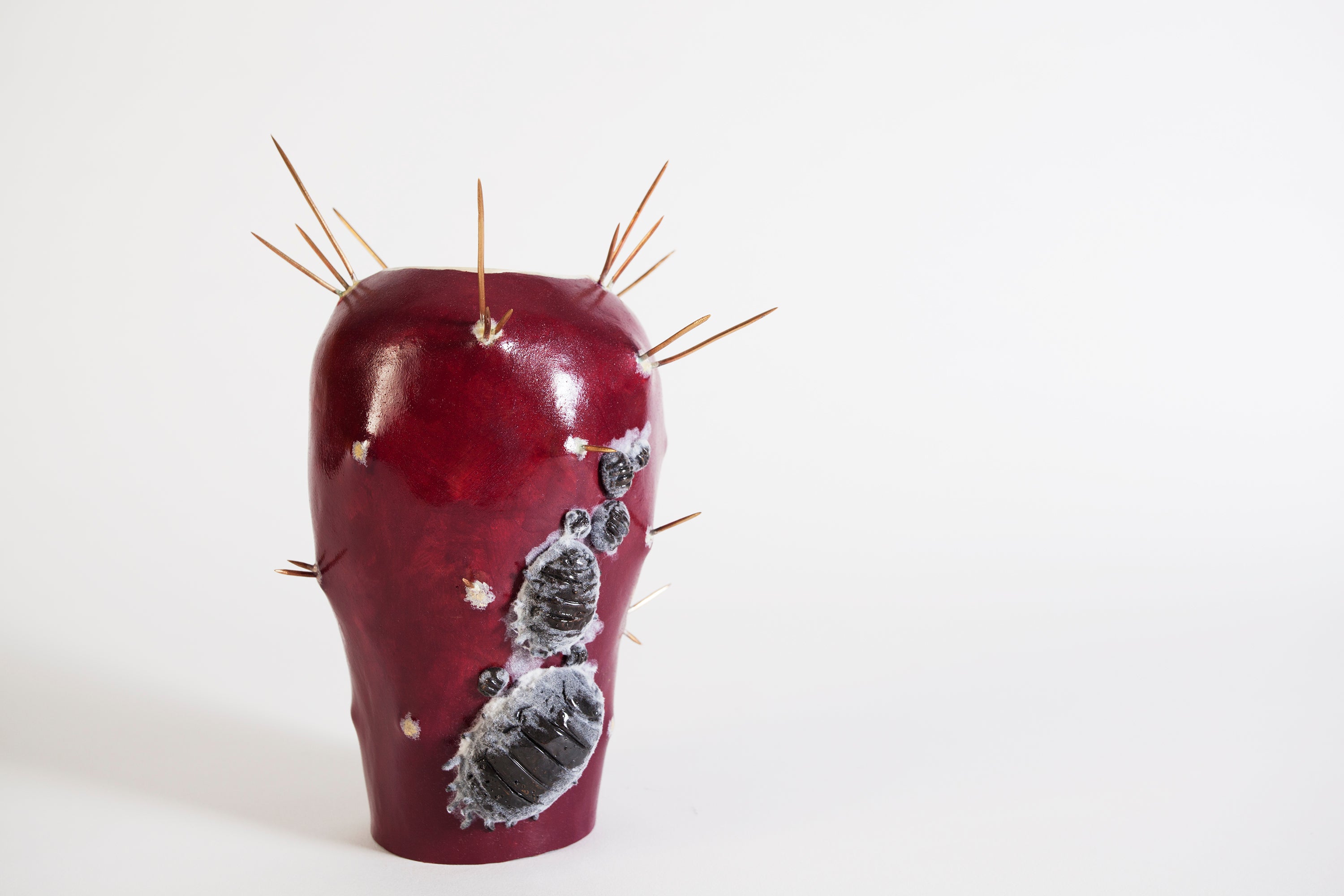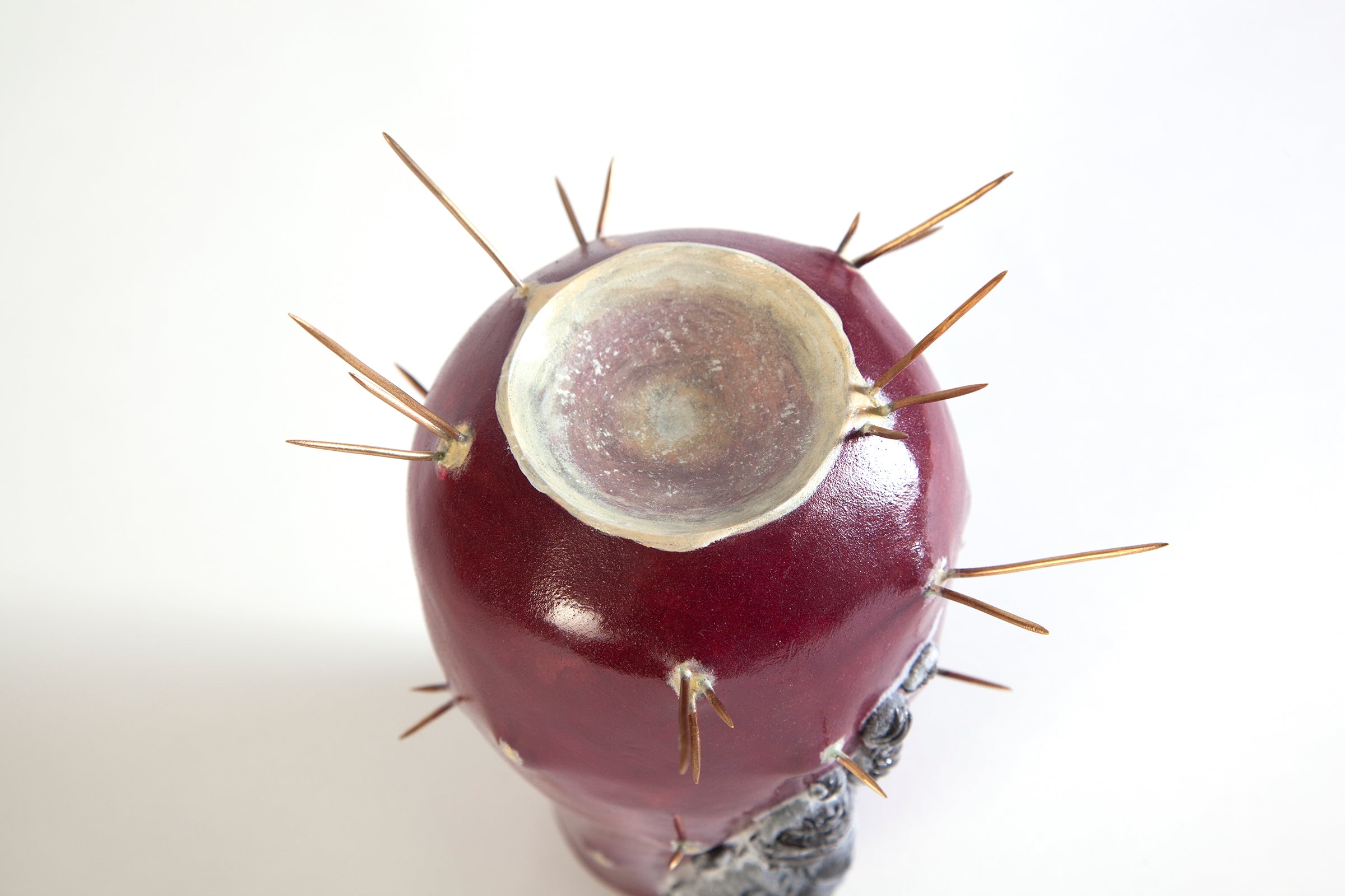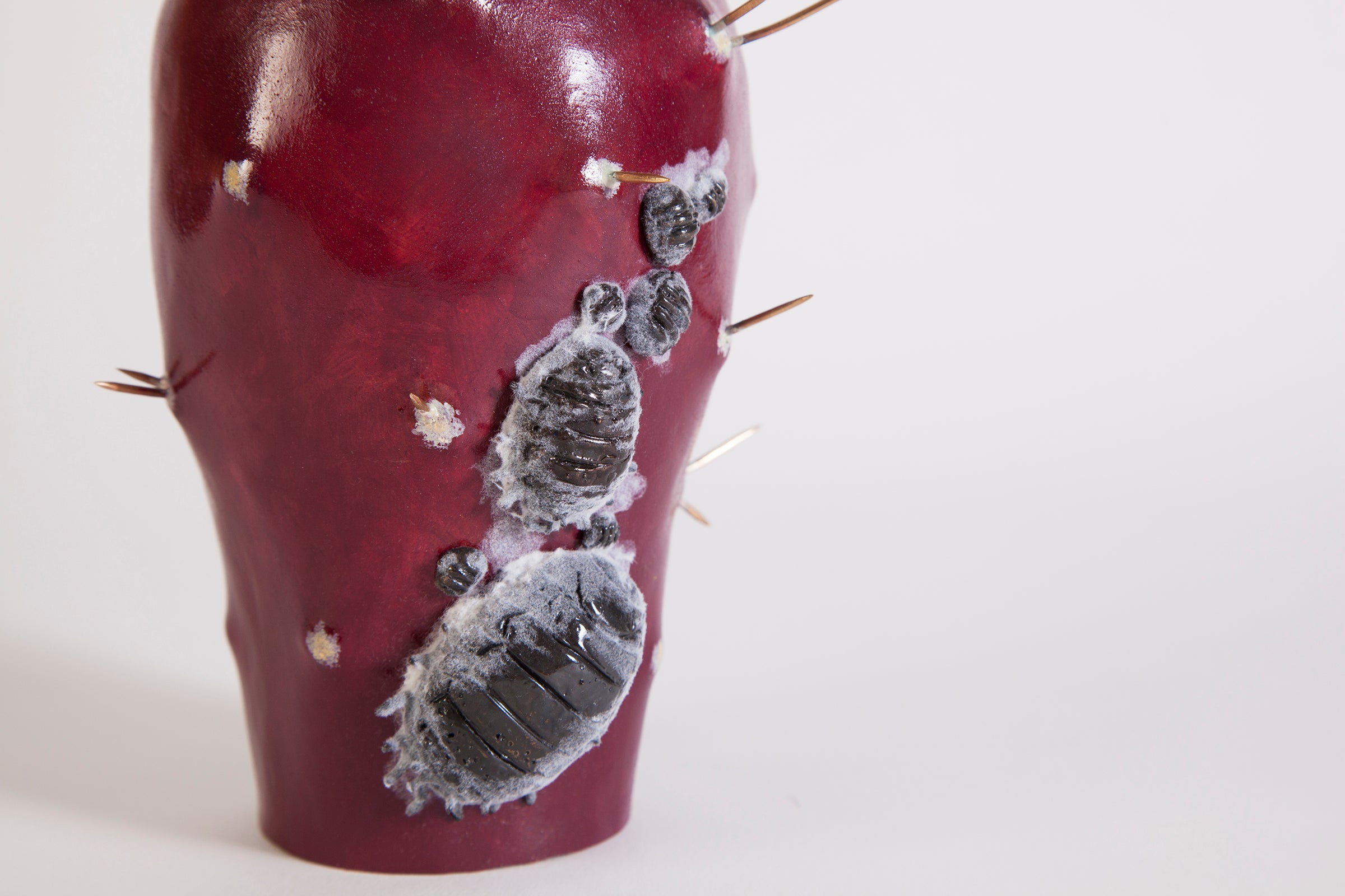 Copper Vessel with Bronze Spikes and Sculpted Cast Bronze Cochineal, Flocking, Cotton Balls, and Acrylic Paint