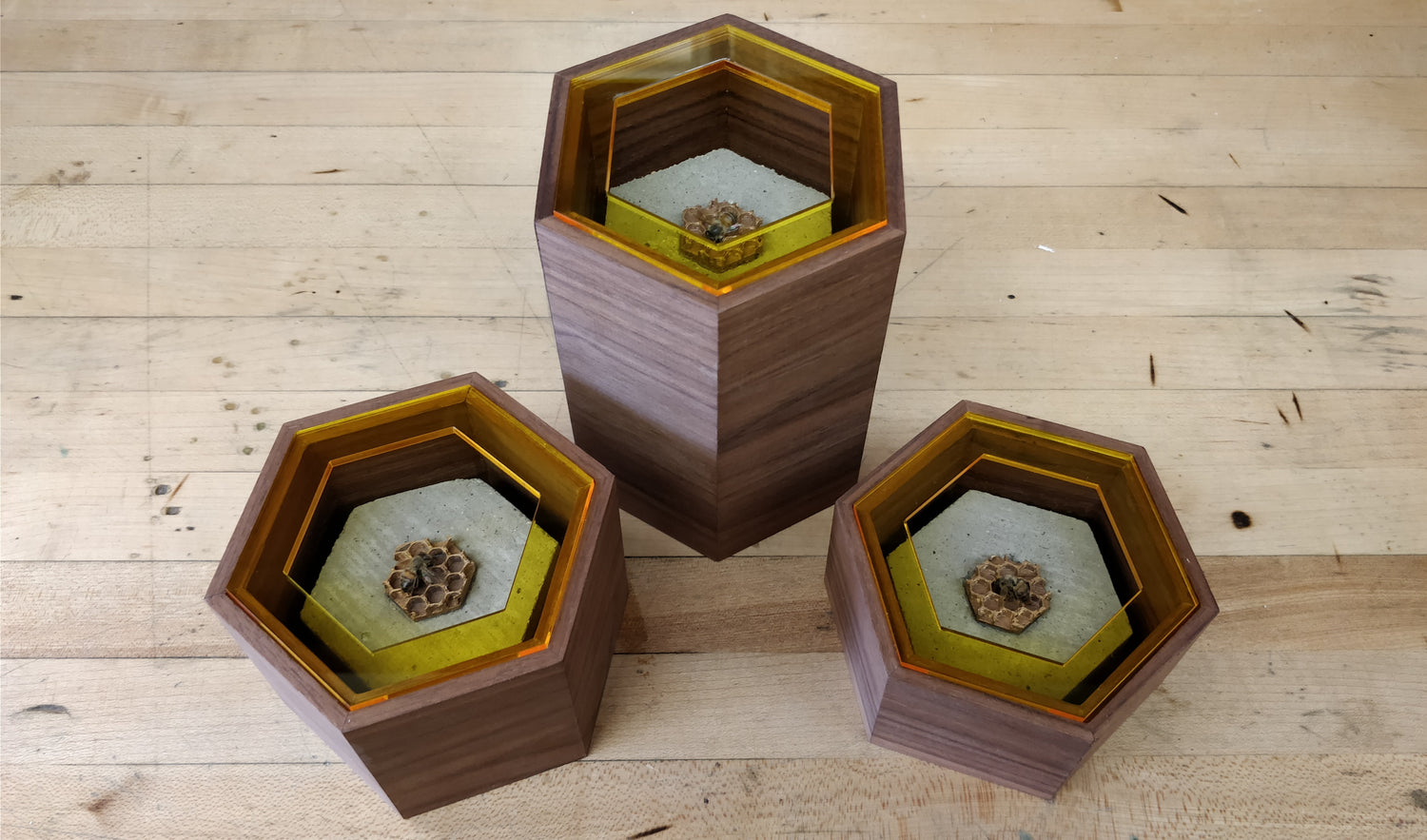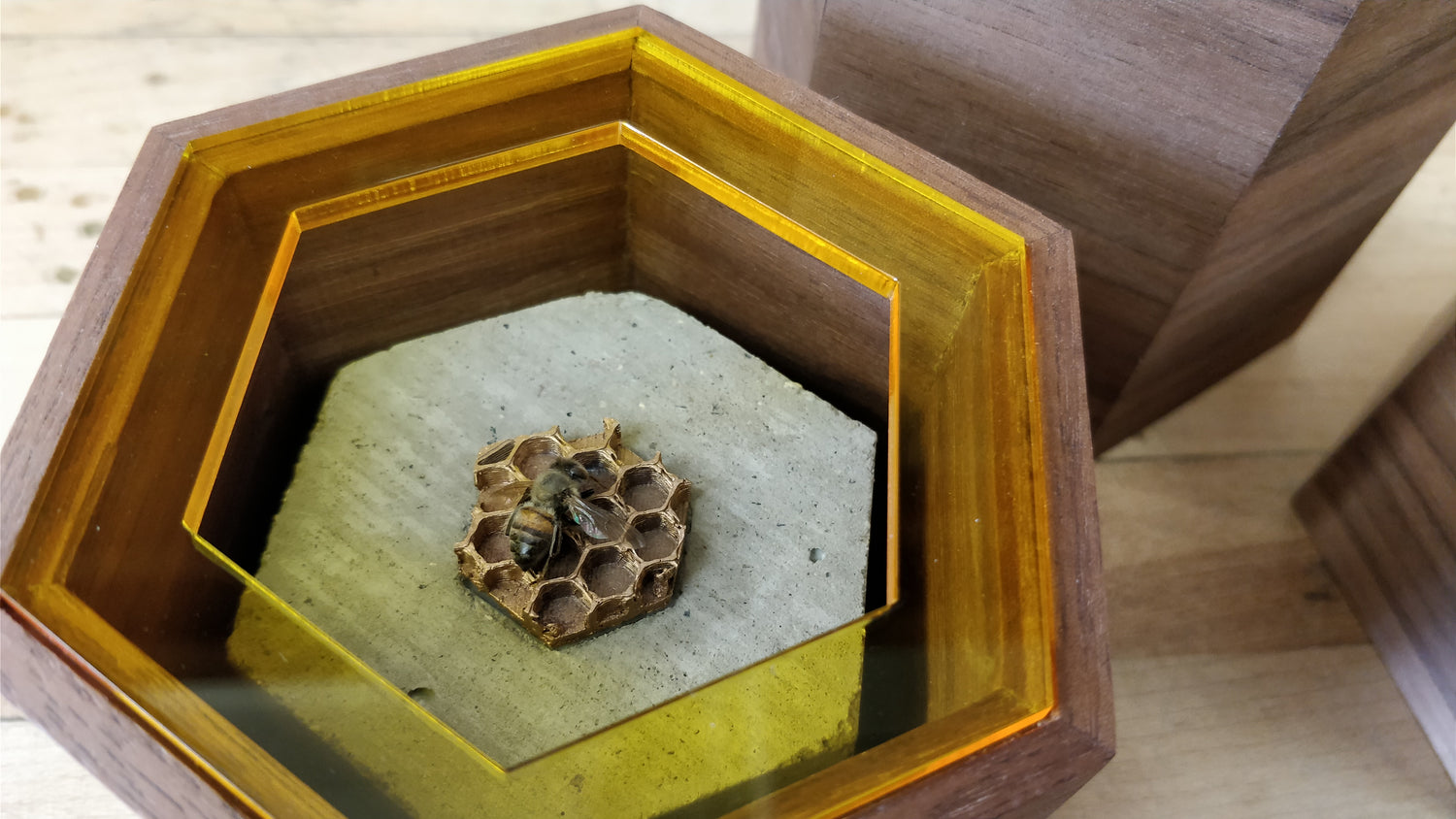 Walnut, Concrete, Acrylic, Bronze, Found Bee Corpses